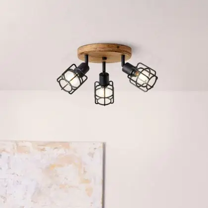 Brilliant Gwen Plafondlamp Metaal Hout Zwart | 350mm - Geschikt voor 3x E14