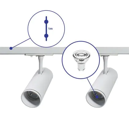 | Fabrikantnaam | Complete Straight 1-meter 1-Phase Track Set White incl. 2x Spot fixture + GU10 2700K 3W Dim – 1 Mete | |