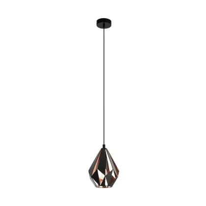 Beschrijving Eglo Pendelarmatuur Carlton 1 Zwart, Koper | Geschikt voor E27