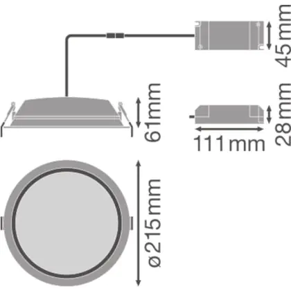 Beschrijving Ledvance LED Downlight DN200 Wit 35W 3150lm - 865 Daglicht | 215m - Zaagmaat 200mm - IP44
