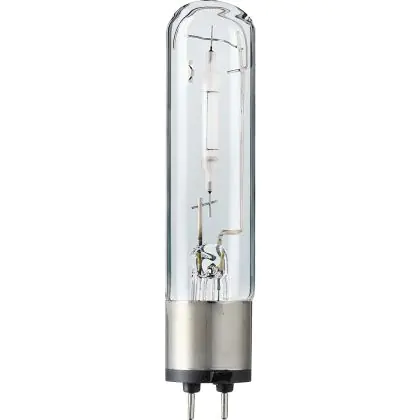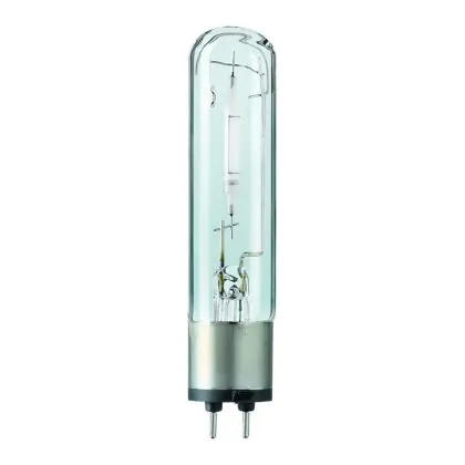-De lampvoet van de Philips SDW-T 100W 825 is PG12-1, deze is rond en heeft 2 pinnen aan de onderzijde.