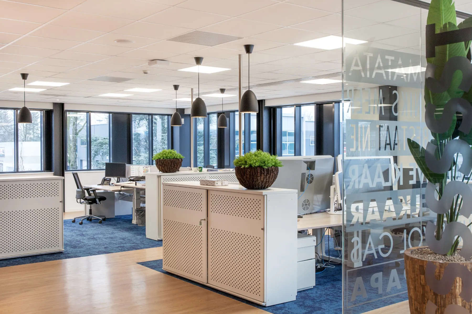 Tijdens dit project hebben we verschillende soorten LED-armaturen geïnstalleerd. De LED-panelen zorgen voor de algemene verlichting, waar de LED railspots, hanglampen en inbouwspots zorgen voor gewenste accentverlichting. De verlichting heeft ook dimmers en sensoren.